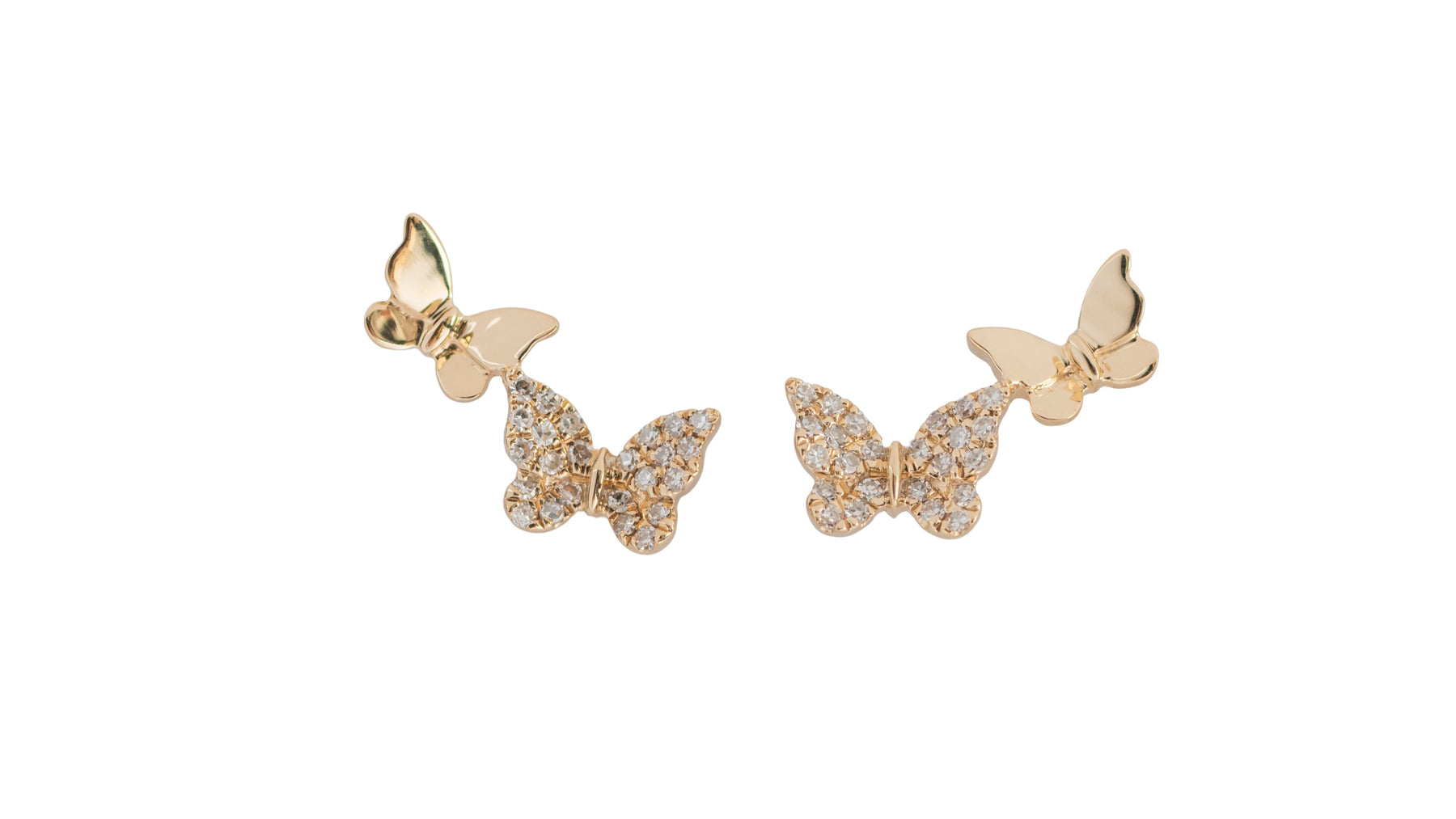 14K yellow gold butterfly studs with 2 butterflies