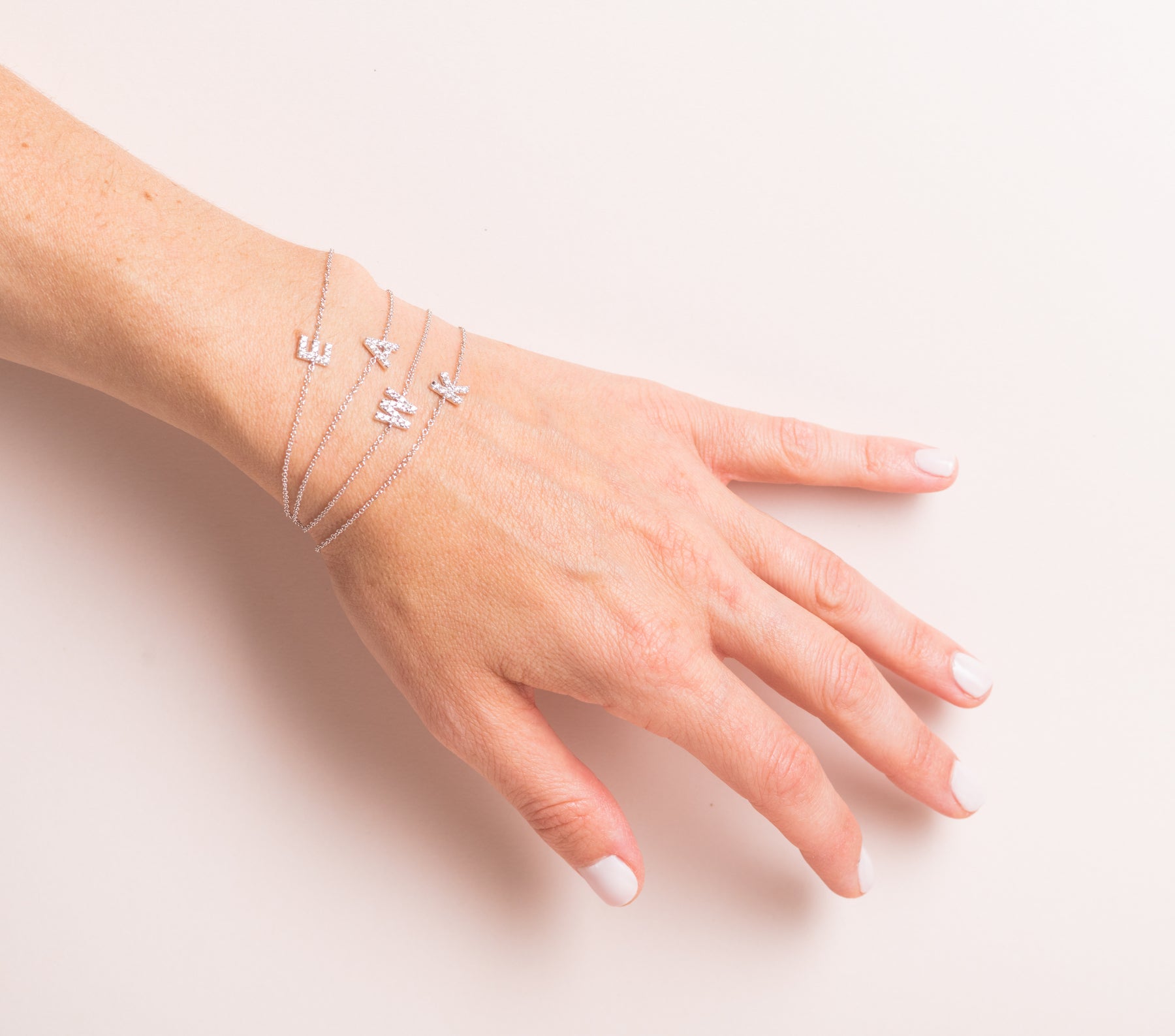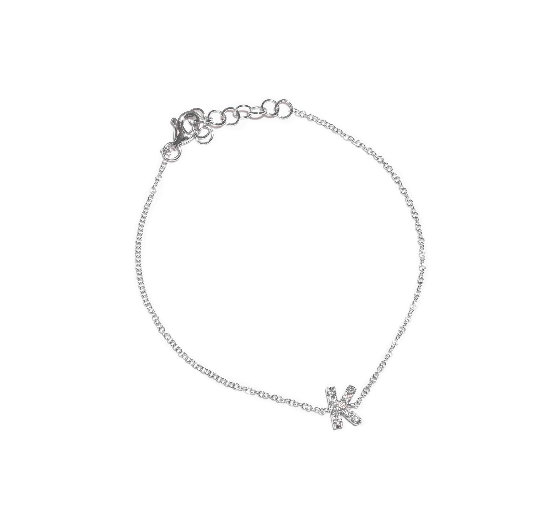 Delicate 14K white gold bracelet with diamond detail on the letter "K"